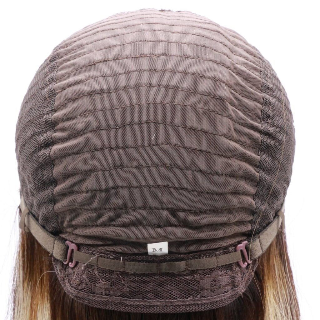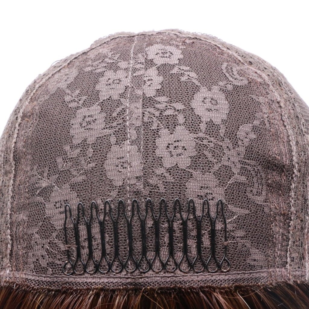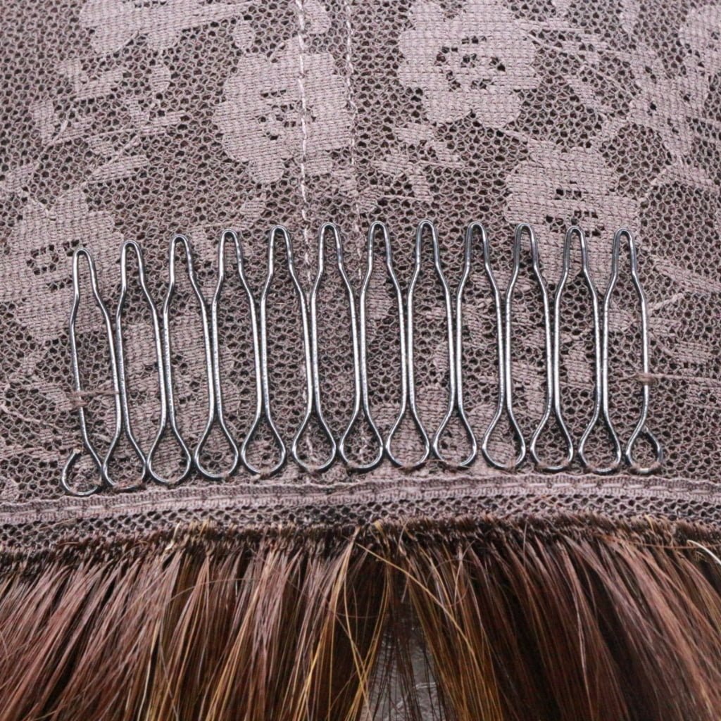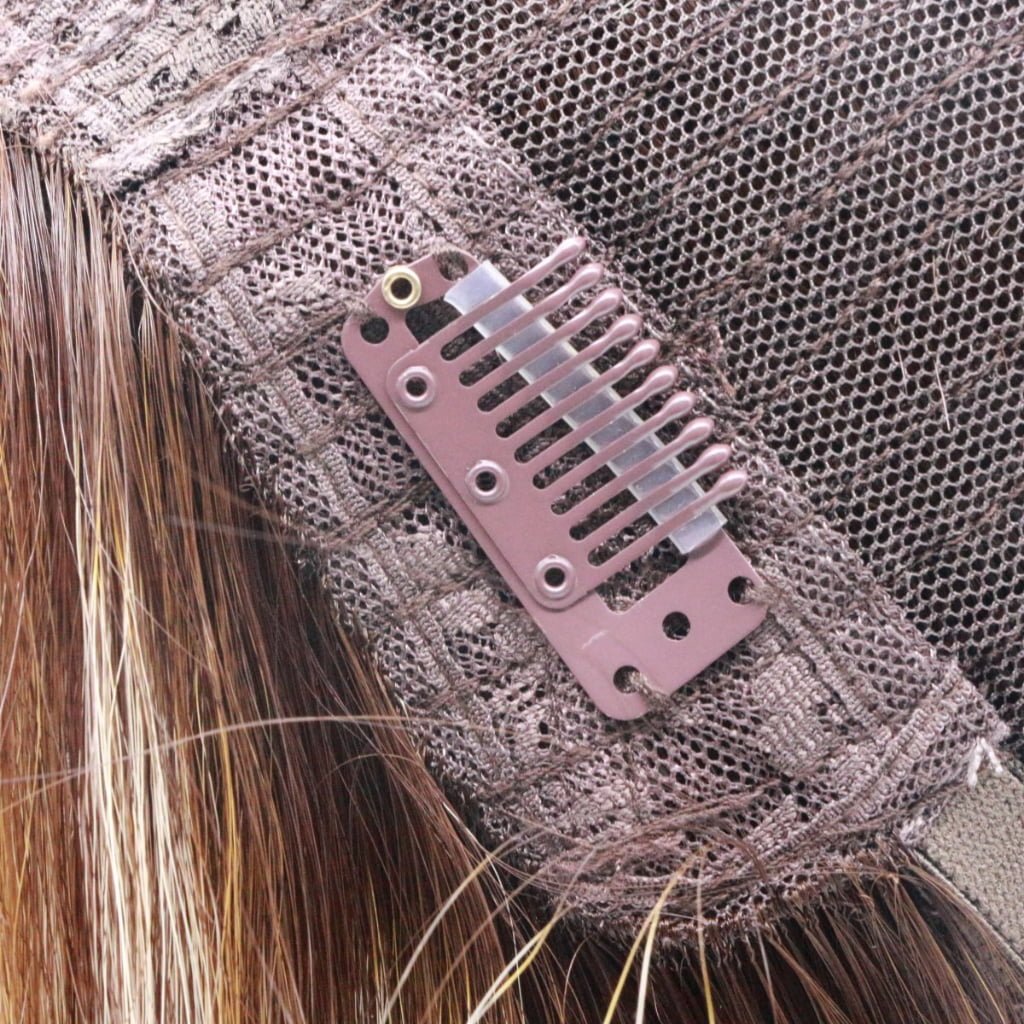 Wefted hair on an elastic cap with adjustable straps and optional clips for a secure and customizable fit